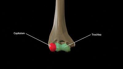 The Capitulum is a rounded eminence forming the lateral part of the distal humerus. The head of the radius articulates with the capitulum.