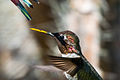 Many other species of hummingbirds also produce sounds with their wings or tails while flying, hovering or diving, including the wings of the calliope hummingbird,[81] broad-tailed hummingbird, rufous hummingbird, Allen's hummingbird, and streamertail, as well as the tail of the Costa's hummingbird and the black-chinned hummingbird, and a number of related species.[82] However, the harmonics of sounds during courtship dives vary across species of hummingbirds.[78]