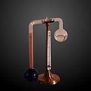 Accurate calibration of the thermometers used is fundamental to precise humidity determination by the wet-dry method. The thermometers must be protected from radiant heat and must have a sufficiently high flow of air over the wet bulb for the most accurate results. One of the most precise types of wet-dry bulb psychrometer was invented in the late 19th century by Adolph Richard Assmann (1845–1918);[12] in English-language references the device is usually spelled "Assmann psychrometer." In this device, each thermometer is suspended within a vertical tube of polished metal, and that tube is in turn suspended within a second metal tube of slightly larger diameter; these double tubes serve to isolate the thermometers from radiant heating. Air is drawn through the tubes with a fan that is driven by a clockwork mechanism to ensure a consistent speed (some modern versions use an electric fan with electronic speed control).[13] According to Middleton, 1966, "an essential point is that air is drawn between the concentric tubes, as well as through the inner one."[14]