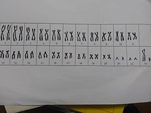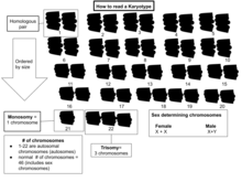 Karyotyping is the process by which photographs of chromosomes are taken in order to determine the chromosome complement of an individual, including the number of chromosomes and any abnormalities. The term is also used for the complete set of chromosomes in a species or in an individual organism[1][2][3] and for a test that detects this complement or measures the number.