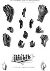 - ^ Mantell, Gideon A. (1848). "On the structure of the jaws and teeth of the Iguanodon". Philosophical Transactions of the Royal Society of London. 138: 183–202. doi:10.1098/rstl.1848.0013. JSTOR 111004.