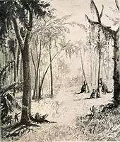 The discovery of Iguanodon has long been accompanied by a popular legend. The story goes that Gideon Mantell's wife, Mary Ann, discovered the first teeth[5] of an Iguanodon in the strata of Tilgate Forest in Whitemans Green, Cuckfield, Sussex, England, in 1822 while her husband was visiting a patient. However, there is no evidence that Mantell took his wife with him while seeing patients. Furthermore, he admitted in 1851 that he himself had found the teeth,[6] although he had previously stated in 1827 that Mrs. Mantell had indeed found the first of the teeth later named Iguanodon.[7] Other later authors agree that the story is not certainly false.[8] It is known from his notebooks that Mantell first acquired large fossil bones from the quarry at Whitemans Green in 1820. Because also theropod teeth were found, thus belonging to carnivores, he at first interpreted these bones, which he tried to combine into a partial skeleton, as those of a giant crocodile. In 1821 Mantell mentioned the find of herbivorous teeth and began to consider the possibility that a large herbivorous reptile was present in the strata. However, in his 1822 publication Fossils of the South Downs he as yet did not dare to suggest a connection between the teeth and his very incomplete skeleton, presuming that his finds presented two large forms, one carnivorous ("an animal of the Lizard Tribe of enormous magnitude"), the other herbivorous.