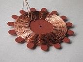 - Another construction technique with similar advantages is flat spiral coils. These are often wound on a flat insulating support with radial spokes or slots, with the wire weaving in and out through the slots; these are called spiderweb coils. The form has an odd number of slots, so successive turns of the spiral lie on opposite sides of the form, increasing separation.