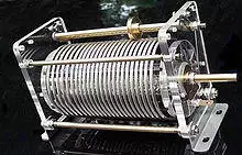 An inductor, also called a coil, choke, or reactor, is a passive two-terminal electrical component that stores energy in a magnetic field when electric current flows through it.[1] An inductor typically consists of an insulated wire wound into a coil.