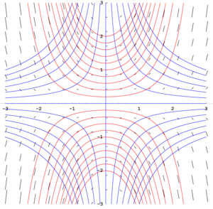Isoclines are often used as a graphical method of solving ordinary differential equations. In an equation of the form y' = f(x, y), the isoclines are lines in the (x, y) plane obtained by setting f(x, y) equal to a constant. This gives a series of lines (for different constants) along which the solution curves have the same gradient. By calculating this gradient for each isocline, the slope field can be visualised; making it relatively easy to sketch approximate solution curves; as in fig. 1.