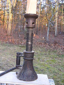 A jackscrew, or screw jack, is a type of jack that is operated by turning a leadscrew. It is commonly used to lift moderately heavy weights, such as vehicles; to raise and lower the horizontal stabilizers of aircraft; and as adjustable supports for heavy loads, such as the foundations of houses.