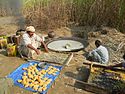 Jaggery (gur) making at small scale near sugarcane farm in Pakistan.