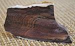Jasper is the main component in the silica-rich parts of banded iron formations (BIFs) which indicate low, but present, amounts of dissolved oxygen in the water such as during the Great Oxidation Event or snowball earths.[15] The red bands, typically more competent than the hematite layers surrounding it, are made of microcrystalline red chert, also called jasper.