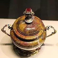 Green jasper was used to make bow drills in Mehrgarh between 4th and 5th millennium BC.[9] Jasper is known to have been a favorite gem in the ancient world; its name can be traced back in Arabic, Persian, Hebrew, Assyrian, Greek and Latin.[10] On Minoan Crete, jasper was carved to produce seals circa 1800 BC, as evidenced by archaeological recoveries at the palace of Knossos.[11]