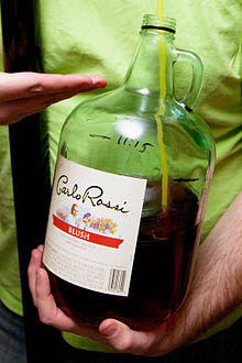 Historically, jug wines were labeled semi-generically, often sold to third parties to be relabeled, or sold directly from the winery's tasting room to customers who would often bring their own bottles.[1] For a period following Prohibition, jug wines were the only domestic wine available for most Americans.[2] Beginning in the 1960s, when Americans began to consume more premium wine, jug wine took on a reputation for being "extreme value" (bargain-priced premium wine).[1][3] Beginning in the late 1980s jug wines have increasingly been labeled varietally to meet consumer demand.