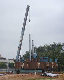 Kentledge (fr. ballast), or kentledge weights, are slabs or blocks of concrete or iron (usually pig iron, sometimes with a cast-in handle for assist moving). They are used within ships or boats as permanent, high-density ballast. They may also be used as counterweights in cranes such as tower cranes or swing bridges as is found in the Victoria Swing Bridge. On construction sites, prior to the erection of a building, static load testing may use a large number of kentledge stacked onto a platform. This platform is used to drive piles into the ground beneath to test the integrity of the foundation.[1][2]