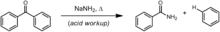 - With sodium amide resulting in C–C bond cleavage with formation of the amide RCONH2 and the alkane R'H, a reaction called the Haller–Bauer reaction.[21]