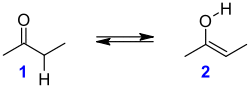 Ketones that have at least one alpha-hydrogen, undergo keto-enol tautomerization; the tautomer is an enol. Tautomerization is catalyzed by both acids and bases. Usually, the keto form is more stable than the enol. This equilibrium allows ketones to be prepared via the hydration of alkynes.