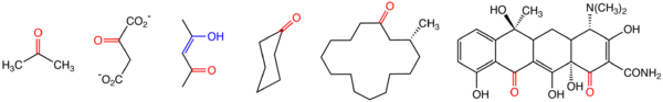 In chemistry, a ketone /ˈkiːtoʊn/ is a functional group with the structure R2C=O, where R can be a variety of carbon-containing substituents. Ketones contain a carbonyl group (a carbon-oxygen double bond). The simplest ketone is acetone (R = R' = methyl), with the formula CH3C(O)CH3. Many ketones are of great importance in industry and in biology. Examples include many sugars (ketoses), many steroids (e.g., testosterone), and the solvent acetone.[1]
