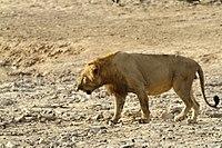 - P. l. melanochaita (Smith, 1842) − includes the extinct Cape lion and lion populations in East and Southern African regions.[17] Synonyms include P. l. somaliensis (Noack 1891), P. l. massaica (Neumann, 1900), P. l. sabakiensis (Lönnberg, 1910), P. l. bleyenberghi (Lönnberg, 1914), P. l. roosevelti (Heller, 1914), P. l. nyanzae (Heller, 1914), P. l. hollisteri (Allen, 1924), P. l. krugeri (Roberts, 1929), P. l. vernayi (Roberts, 1948), and P. l. webbiensis (Zukowsky, 1964).[1][14] It has been referred to as 'southern subspecies' and 'southern lion'.[19]
