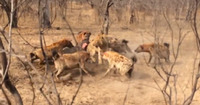 Lions and spotted hyenas occupy a similar ecological niche and where they coexist they compete for prey and carrion; a review of data across several studies indicates a dietary overlap of 58.6%.[121] Lions typically ignore spotted hyenas unless the lions are on a kill or are being harassed by the hyenas, while the latter tend to visibly react to the presence of lions, with or without the presence of food. Lions seize the kills of spotted hyenas; in the Ngorongoro crater it is common for lions to subsist largely on kills stolen from hyenas, causing the hyenas to increase their kill rate.[122] In Botswana's Chobe National Park, the situation is reversed; hyenas frequently challenge lions and steal their kills, obtaining food from 63% of all lion kills.[123] When confronted on a kill by lions, spotted hyenas may either leave or wait patiently at a distance of 30–100 m (100–330 ft) until the lions have finished.[124] Hyenas are bold enough to feed alongside lions and to force the lions off a kill. The two species attack one another even when there is no food involved for no apparent reason.[125][126] Lion predation can account for up to 71% of hyena deaths in Etosha National Park. Spotted hyenas have adapted by frequently mobbing lions that enter their territories.[127] When the lion population in Kenya's Masai Mara National Reserve declined, the spotted hyena population increased rapidly.[128] Experiments on captive spotted hyenas show that specimens without prior experience with lions act indifferently to the sight of them, but will react fearfully to lion scent.[122]