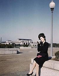 In 1950 chemist Hazel Bishop formed a company, Hazel Bishop Inc., to promote her invention of long-lasting, non-smearing 'kissproof' lipstick ("stays on you... not on him"), which quickly gained acceptance.[22] At the end of the 1950s, a cosmetic company named Gala introduced pale shimmery lipstick. Later, Max Factor created a popular lipstick color called Strawberry Meringue. Lipstick manufacturers began creating lipsticks in lavender, pale pink, white, and peach. Since parents generally frowned on teen girls wearing red lipstick, some teen girls began wearing pink and peach lipsticks, which became a trend.[23] White or nearly white lipstick was popular in the 1960s.[20] Rock groups such as the Ronettes and the Shirelles popularized white lipstick. Girls would apply white lipstick over pink lipstick or place under-eye concealer on their lips. During that time, many lipsticks were either matte, sheer, or slightly shiny. In the 1960s, lipstick was associated with femininity. Women who did not wear lipstick were suspected of mental illness or lesbianism.[20]