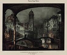 Senefelder had experimented during the early 19th century with multicolor lithography; in his 1819 book, he predicted that the process would eventually be perfected and used to reproduce paintings.[3] Multi-color printing was introduced by a new process developed by Godefroy Engelmann (France) in 1837 known as chromolithography.[3] A separate stone was used for each color, and a print went through the press separately for each stone. The main challenge was to keep the images aligned (in register). This method lent itself to images consisting of large areas of flat color, and resulted in the characteristic poster designs of this period.