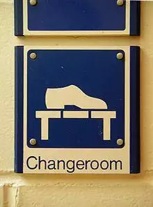 A changing room, locker room, dressing room (usually in a sports, theater or staff context) or changeroom (regional use) is a room or area designated for changing one's clothes. Changing rooms are provided in a semi-public situation to enable people to change clothes with varying degrees of privacy.