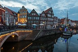 Typical German Fachwerkhäuser in the Hanseatic Harbour of Stade, Germany