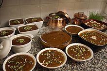 In Persian countries, a sweet paste made entirely from germinated wheat is called samanū (Persian: سمنو) in Iran, samanak (Persian: سمنو), (Tajik: суманак); (Uzbek: sumalak) or sümölök (Kyrgyz: сүмөлөк), which is prepared for Nowruz (Persian new year celebration) in a large pot (like a kazan). A plate or bowl of samanu is a traditional component of the Haft sin table symbolising affluence. Traditionally, women have a special party to prepare it during the night, and cook it from late in the evening until the daylight, singing related songs. In Tajikistan and Afghanistan, they sing: Samanak dar Jūsh u mā Kafcha zanēm – Dīgarān dar Khwāb u mā Dafcha zanēm.[8][9][10] (Meaning: "Samanak is boiling and we are stirring it, others are asleep and we are playing daf"). In modern times, making samanu can be a family gathering. It originally comes from the Great Persian Empire.