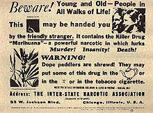 In 1925, a compromise was made at an international conference in The Hague about the International Opium Convention that banned exportation of "Indian hemp" to countries that had prohibited its use, and requiring importing countries to issue certificates approving the importation and stating that the shipment was required "exclusively for medical or scientific purposes". It also required parties to "exercise an effective control of such a nature as to prevent the illicit international traffic in Indian hemp and especially in the resin".[206][207] In the United States in 1937, the Marihuana Tax Act was passed,[208] and prohibited the production of hemp in addition to cannabis.