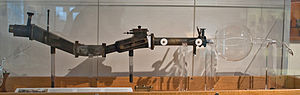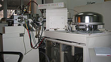 The word spectrograph had become part of the international scientific vocabulary by 1884.[2][3] Early spectrometry devices that measured the mass-to-charge ratio of ions were called mass spectrographs which consisted of instruments that recorded a spectrum of mass values on a photographic plate.[4][5] A mass spectroscope is similar to a mass spectrograph except that the beam of ions is directed onto a phosphor screen.[6] A mass spectroscope configuration was used in early instruments when it was desired that the effects of adjustments be quickly observed. Once the instrument was properly adjusted, a photographic plate was inserted and exposed. The term mass spectroscope continued to be used even though the direct illumination of a phosphor screen was replaced by indirect measurements with an oscilloscope.[7] The use of the term mass spectroscopy is now discouraged due to the possibility of confusion with light spectroscopy.[1][8] Mass spectrometry is often abbreviated as mass-spec or simply as MS.[1]