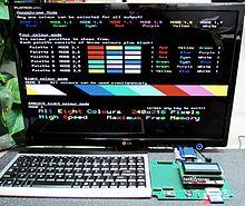 - Colour VGA with eight colours (black, red, green, blue, cyan, yellow, purple and white).