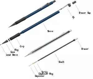 A mechanical pencil, also clutch pencil, is a pencil with a replaceable and mechanically extendable solid pigment core called a "lead" /ˈlɛd/. The lead, often made of graphite, is not bonded to the outer casing, and can be mechanically extended as its point is worn away as it is being used. Other names include microtip pencil, automatic pencil, drafting pencil, technical pencil, click pencil, pump pen, pump pencil, leadholder, pacer (Australian English), propelling pencil (Australian English),[1] pen pencil (Indian English), and lead pencil (Bangladeshi and American English).