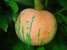 A melon is any of various plants of the family Cucurbitaceae with sweet, edible, and fleshy fruit. The word "melon" can refer to either the plant or specifically to the fruit. Botanically, a melon is a kind of berry, specifically a "pepo". The word melon derives from Latin melopepo,[1][2] which is the latinization of the Greek μηλοπέπων (mēlopepōn), meaning "melon",[3] itself a compound of μῆλον (mēlon), "apple, treefruit (of any kind)"[4] and πέπων (pepōn), amongst others "a kind of gourd or melon".[5] Many different cultivars have been produced, particularly of cantaloupes.