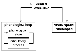 The phonological loop stores auditory information by silently rehearsing sounds or words in a continuous loop: the articulatory process (for example the repetition of a telephone number over and over again). A short list of data is easier to remember.