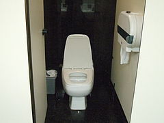 Many public toilets have either individual or gender-neutral facilities. They can accommodate people with disabilities, elderly persons who may require assistance from a carer of another gender, or other cases where public sex-separated facilities might lead to discomfort.[43] Gender-neutral toilets are also an option in cases where sex-separated ones are not practical, such as in aircraft lavatories and passenger train toilets. Toilet facilities for disabled people, especially those reliant on a wheelchair, may be either unisex or gender-specific.[44]