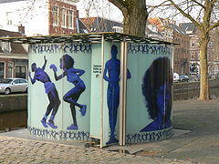 Another traditional type that has been modernized is the screened French street urinal known as a pissoir (vespasienne). An updated cylindrical urinal that lowers beneath street level out of the way and pops up during hours when it is needed is the Urilift Pop Up Urinal.[7] It is typically installed in entertainment districts and is operational only during weekends, evenings and nights. This urinal brand, invented in the Netherlands, also offers a pop-up toilet for women.[7]