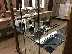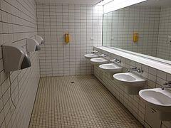 - Sometimes showers are also present, often with soap, shampoo, or similar dispensers (often at truck stops)