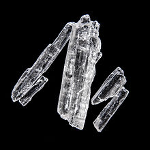 The two crystal forms for racemic menthol have melting points of 28 °C and 38 °C. Pure (−)-menthol has four crystal forms, of which the most stable is the α form, the familiar broad needles.
