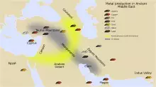 The earliest recorded metal employed by humans appears to be gold, which can be found free or "native". Small amounts of natural gold have been found in Spanish caves dating to the late Paleolithic period, 40,000 BC.[5] Silver, copper, tin and meteoric iron can also be found in native form, allowing a limited amount of metalworking in early cultures.[6] Egyptian weapons made from meteoric iron in about 3,000 BC were highly prized as "daggers from heaven".[7] Certain metals, notably tin, lead, and at a higher temperature, copper, can be recovered from their ores by simply heating the rocks in a fire or blast furnace, a process known as smelting. The first evidence of this extractive metallurgy, dating from the 5th and 6th millennia BC,[8] has been found at archaeological sites in Majdanpek, Jarmovac near Priboj and Pločnik, in present-day Serbia. To date, the earliest evidence of copper smelting is found at the Belovode site near Plocnik.[9] This site produced a copper axe from 5,500 BC, belonging to the Vinča culture.[10]