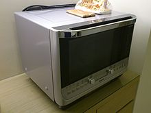 A microwave oven (colloquially referred to as a microwave) is an electric oven that heats and cooks food by exposing it to electromagnetic radiation in the microwave frequency range.[1] This induces polar molecules in the food to rotate and produce thermal energy in a process known as dielectric heating. Microwave ovens heat foods quickly and efficiently because excitation is fairly uniform in the outer 25–38 mm (1–1.5 inches) of a homogeneous, high water content food item.