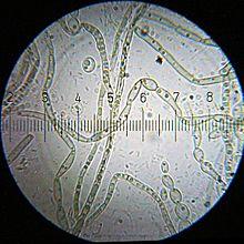 Mildew is a form of fungus. It is distinguished from its closely related counterpart, mould, largely by its color: moulds appear in shades of black, blue, red, and green, whereas mildew is white. It appears as a thin, superficial growth consisting of minute hyphae (fungal filaments) produced especially on living plants or organic matter such as wood, paper or leather.[1][2] Both mould and mildew produce distinct offensive odors, and both have been identified as the cause of certain human ailments.