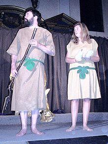 As early as the fifth century living tableaux were introduced into sacred services.[6] The plays originated as simple tropes, verbal embellishments of liturgical texts, and slowly became more elaborate. At an early period chants from the service of the day were added to the prose dialogue. As these liturgical dramas increased in popularity, vernacular forms emerged, as travelling companies of actors and theatrical productions organized by local communities became more common in the later Middle Ages.