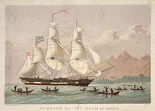 The missionary ship Duff arriving at Tahiti, c. 1797