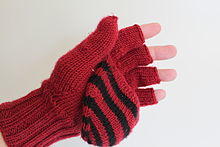 A mitten is a type of handwear that covers the entire hand but does not have separate finger openings or sheaths. Generally, mittens still separate the thumb from the other four fingers. They have different colours and designs. Mittens provide greater thermal insulation than gloves as they have a smaller surface area exposed to the cold,[1] but have a trade-off in dexterity.