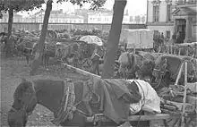 The Second Italian War of Independence illustrated all of the problems in modern army mobilization. Prussia began to realize the future of mobilizing mass armies when Napoleon III transported 130,000 soldiers to Italy by military railways in 1859.[5] French caravans that carried the supplies for the French and Piedmontese armies were incredibly slow, and the arms inside these caravans were sloppily organized.[6] These armies were in luck, however, in that their Austrian adversaries experienced similar problems with sluggish supply caravans (one of which apparently covered less than three miles per day).[6]