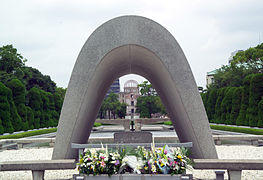 The Hiroshima Cenotaph and Atomic Bomb Dome to remember the victims of August 6, 1945 atomic bombing
