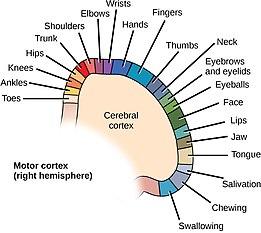 - ^ Schieber, M.H. & Hibbard, L.S. (1993). "How somatotopic is the motor cortex hand area?". Science. 261 (5120): 489–492. Bibcode:1993Sci...261..489S. doi:10.1126/science.8332915. PMID 8332915.