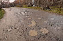 Puddles commonly form during rain, and can cause problems for transport. Due to the angle of the road, puddles tend to be forced by gravity to gather on the edges of the road. This can cause splashing as cars drive through the puddles, which causes water to be sprayed onto pedestrians on the pavement. Irresponsible drivers may do this deliberately, which, in some countries, can lead to prosecution for careless driving.[3]