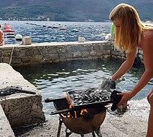 Mussels can be smoked, boiled, steamed, roasted, barbecued or fried in butter or vegetable oil. As with all shellfish, except shrimp, mussels should be checked to ensure they are still alive just before they are cooked; enzymes quickly break down the meat and make them unpalatable or poisonous after dying or uncooked. Some mussels might contain toxins.[18] A simple criterion is that live mussels, when in the air, will shut tightly when disturbed. Open, unresponsive mussels are dead, and must be discarded. Unusually heavy, wild-caught, closed mussels may be discarded as they may contain only mud or sand. (They can be tested by slightly opening the shell halves.) A thorough rinse in water and removal of "the beard" is suggested. Mussel shells usually open when cooked, revealing the cooked soft parts. Historically, it has been believed that after cooking all the mussels should have opened and those that have not are not safe to eat and should be discarded. However, according to marine biologist Nick Ruello, this advice may have arisen from an old, poorly researched cookbook's advice, which has now become an assumed truism for all shellfish. Ruello found 11.5% of all mussels failed to open during cooking, but when forced open, 100% were "both adequately cooked and safe to eat."[19][20]