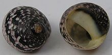 | Two shells of the freshwater nerite Theodoxus danubialis, scale bar in mm | |