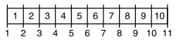 Consider an array of items, and items m through n (inclusive) are to be processed. How many items are there? An intuitive answer may be n − m, but that is off by one, exhibiting a fencepost error; the correct answer is (n – m) + 1.
