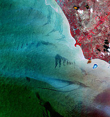 Shoreline type is classified by rank depending on how easy the target site would be to clean up, how long the oil would persist, and how sensitive the shoreline is.[85] The floating oil slicks put the shoreline at particular risk when they eventually come ashore, covering the substrate with oil. The differing substrates between shoreline types vary in their response to oiling, and influence the type of cleanup that will be required to effectively decontaminate the shoreline. In 1995, the US National Oceanic and Atmospheric Administration extended ESI maps to lakes, rivers, and estuary shoreline types.[84] The exposure the shoreline has to wave energy and tides, substrate type, and slope of the shoreline are also taken into account—in addition to biological productivity and sensitivity. The productivity of the shoreline habitat is also taken into account when determining ESI ranking.[86] Mangroves and marshes tend to have higher ESI rankings due to the potentially long-lasting and damaging effects of both the oil contamination and cleanup actions. Impermeable and exposed surfaces with high wave action are ranked lower due to the reflecting waves keeping oil from coming onshore, and the speed at which natural processes will remove the oil.
