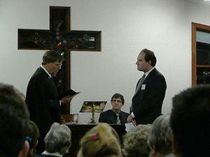 A growing number of Protestant denominations also have an office of Commissioned Pastor, with the person not ordained as a minister, but providing all the sacraments and leading a church.[31]